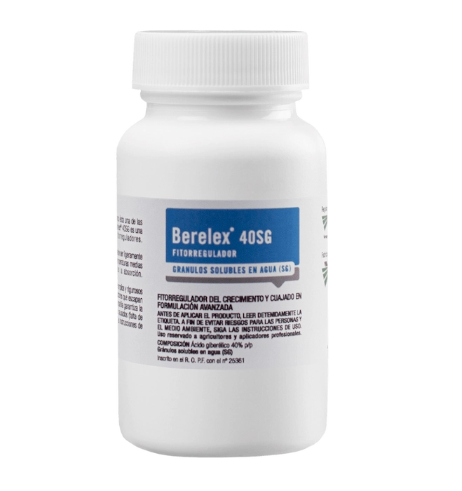BERELEX® 40 SG es un producto formulado a base de ácido giberélico GA3, siendo ésta una de las sustancias naturales reguladoras del crecimiento de las plantas más activas. BERELEX® 40 SG es una formulación desarrollada para su utilización en tratamientos fitorreguladores.